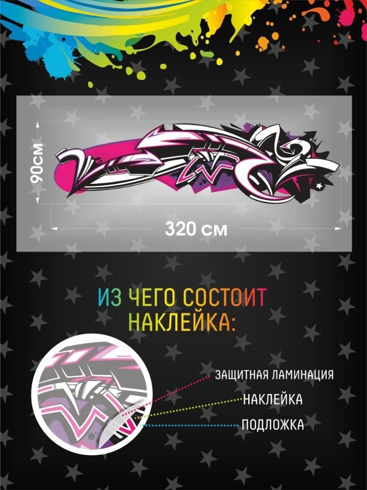 Наклейка на авто большая - это стильный и оригинальный аксессуар, который может преобразить ваш автомобиль. Эта наклейка на машину с рисунком ""граффити"" большая и заметная, придает машине индивидуальность и выделют ее из общей массы. Рисунок "граффити" представляет собой абстрактный узор в цветных тонах, который добавляет динамики и свежести в облик автомобиля.