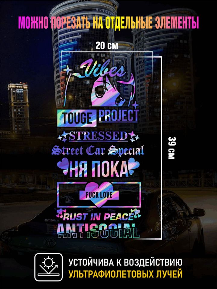 "Наклейки JDM набор - Подари своему автомобилю уникальный стиль с автомобильным набором самоклеящихся наклеек, которые не только придадут ему индивидуальность, но также защитят от царапин и выгорания на солнце. Эти стикеры на машину водостойкие, устойчивы к любым механическим и химическим воздействиям, что обеспечивает долговечность и сохранение яркости цветов на протяжении длительного времени.