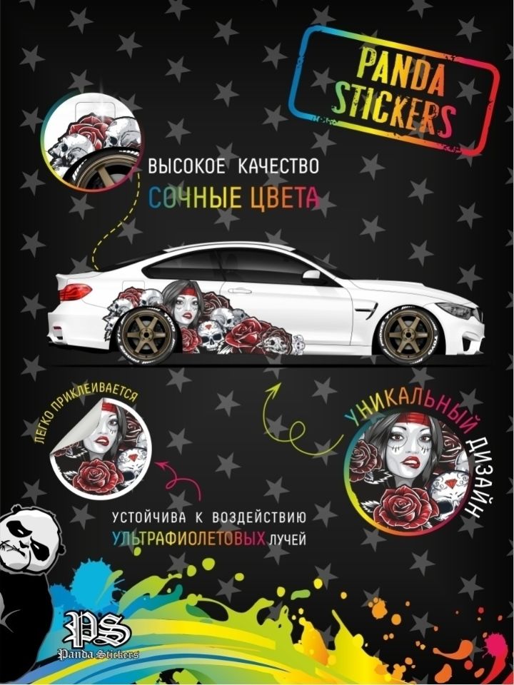Наклейка напечатана качественными чернилами на японском оборудовании, заламинирована защитной глянцевой ламинацией и вырезана по контуру. Оклейку лучше производить мокрым способом - 1 капля мыла на литр воды, в сухом и теплом помещении с использованием фена. Так же рекомендуем обратиться за оклейкой к профессионалам в вашем городе. Срок службы наклейки от 1 года до 3 лет. Наклейка на 2 стороны автомобиля.