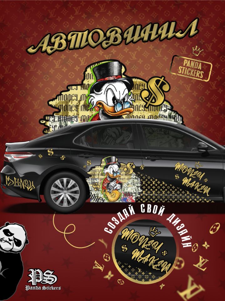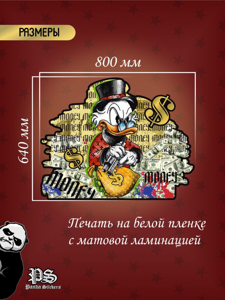 Наклейки на автомобиль большие - Шикарная и супер яркая матовая наклейка на авто! Вы ищете оригинальный способ выделить свой автомобиль из всех остальных на дороге? Наша большая наклейка для авто "Скрудж Money" идеально подойдет для этой цели!