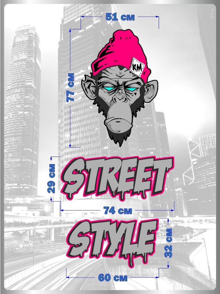 Наклейка на авто большая и яркая, что позволит вашему автомобилю выделиться на дороге. Уникальный дизайн украшен обезьяной в стиле Street Style, что придаст вашему автомобилю неповторимый облик и привлечет восхищенные взгляды окружающих.